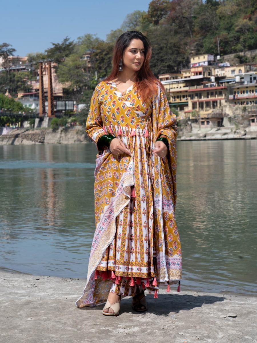 Product Descripiton :The Bahaar Hand Block Printed Angrakha Kurta Set for Women is a perfect blend of tradition, comfort, and style. Whether for festive occasions or everyday wear, this ensemble ensures you radiate charm and sophistication.