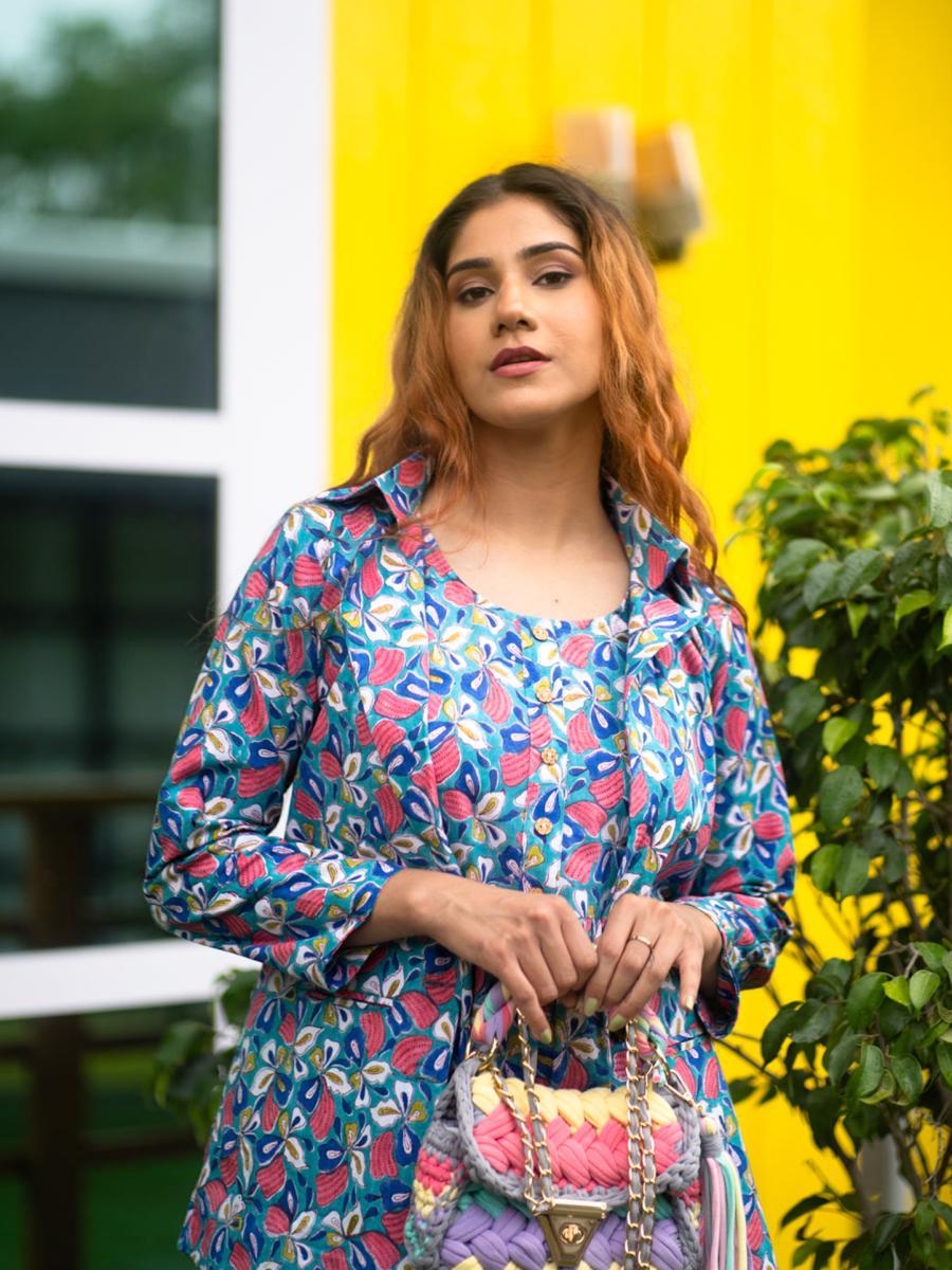 Product Descripiton :Elevate your fashion game with this Butterfly Hand Block Printed Dress with Jacket, a perfect fusion of playful design and timeless craftsmanship. Featuring intricately hand block-printed butterfly motifs, this dress exudes charm and individuality. Paired with a coordinating jacket, this ensemble is versatile, comfortable, and ideal for casual outings, Office Meetings or chic day events.