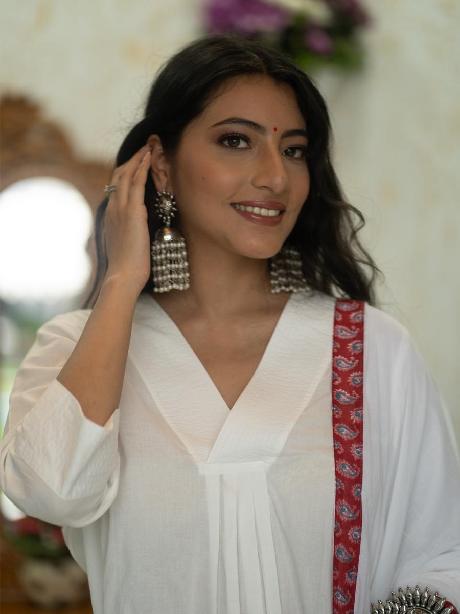 Product Descripiton :Embrace timeless sophistication with this Plain Chaandni Kurta Set, beautifully paired with a Hand Block Printed Dupatta. The minimalist white kurta is crafted from soft, breathable fabric, offering all-day comfort, while the dupatta features intricate hand block prints inspired by traditional artistry. Perfect for festive occasions, casual gatherings, or cultural events, this set is a versatile addition to your ethnic wardrobe