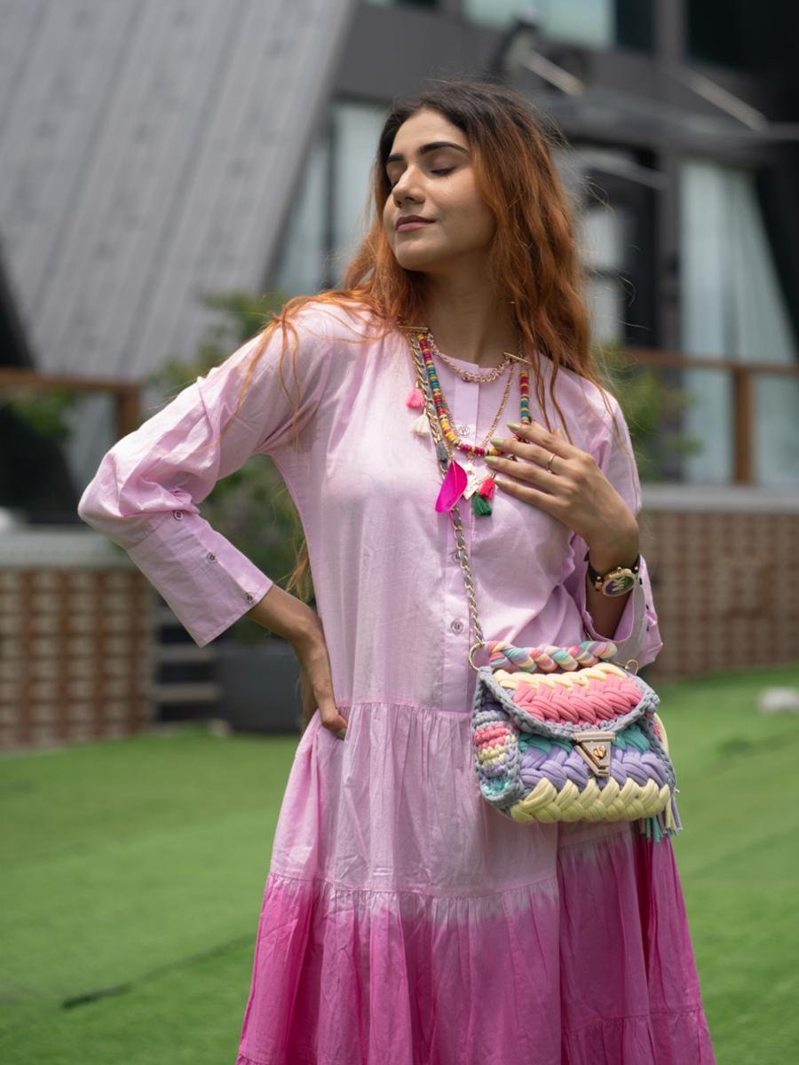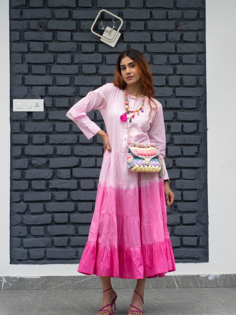 Product Descripiton :Add a pop of color to your wardrobe with this Gulaabi Tie-Dye Tiered Dress, a stunning combination of playful design and comfort. Featuring an eye-catching tie-dye pattern in soft pink tones, this dress is crafted from breathable fabric for all-day wear. The tiered silhouette adds a touch of femininity and movement, making it perfect for casual outings, brunch dates, or relaxed vacations