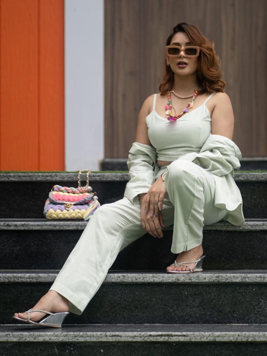 Product Descripiton :Refresh your wardrobe with this Powder Green Cotton Flex Co-ord Set, a versatile combination of comfort and modern elegance. Made from breathable cotton flex fabric, this set includes a bikini top, bikini bottom, and a stylish shrug, perfect for vacations, poolside lounging, or casual summer outings. The serene powder green hue adds a refreshing charm, making this ensemble an essential for your relaxed yet chic look