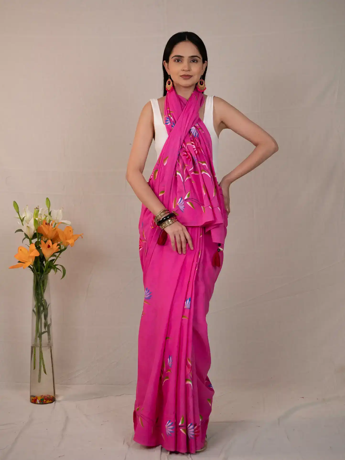 Phoolkari Hand Block Printed kalidaar Kurta Set